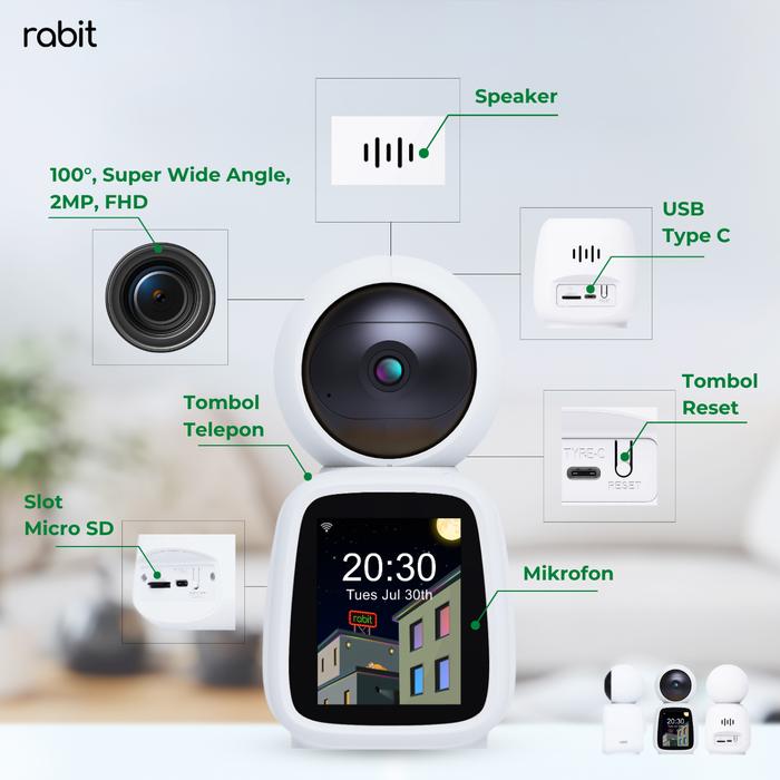 Rabit Smart Ip Cctv Wifi Camera Indoor Ptz Screen Baby Monitor Full Hd 2 Mp Two Way Video Call Kamera Ai Auto Tracking B