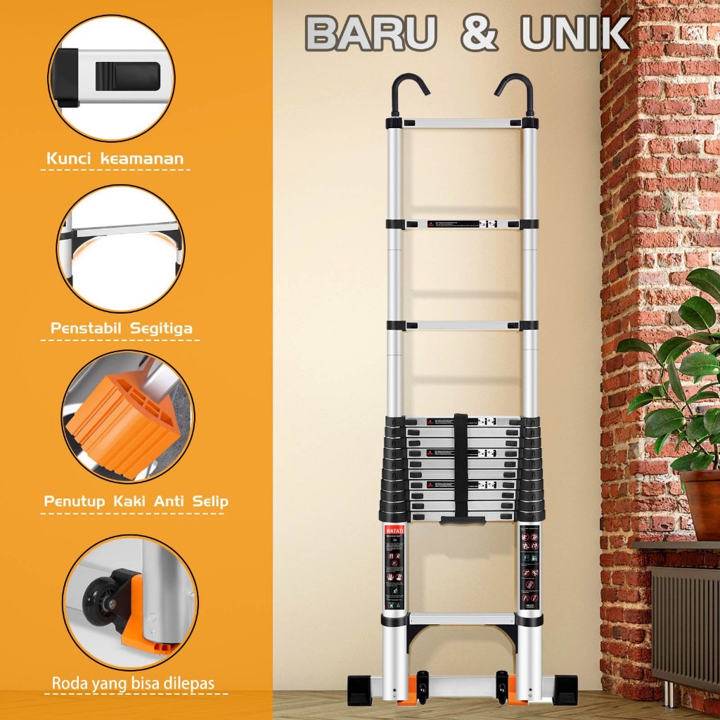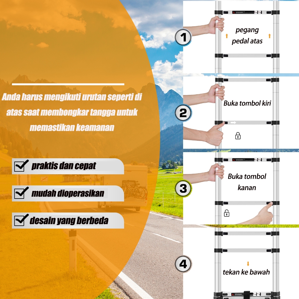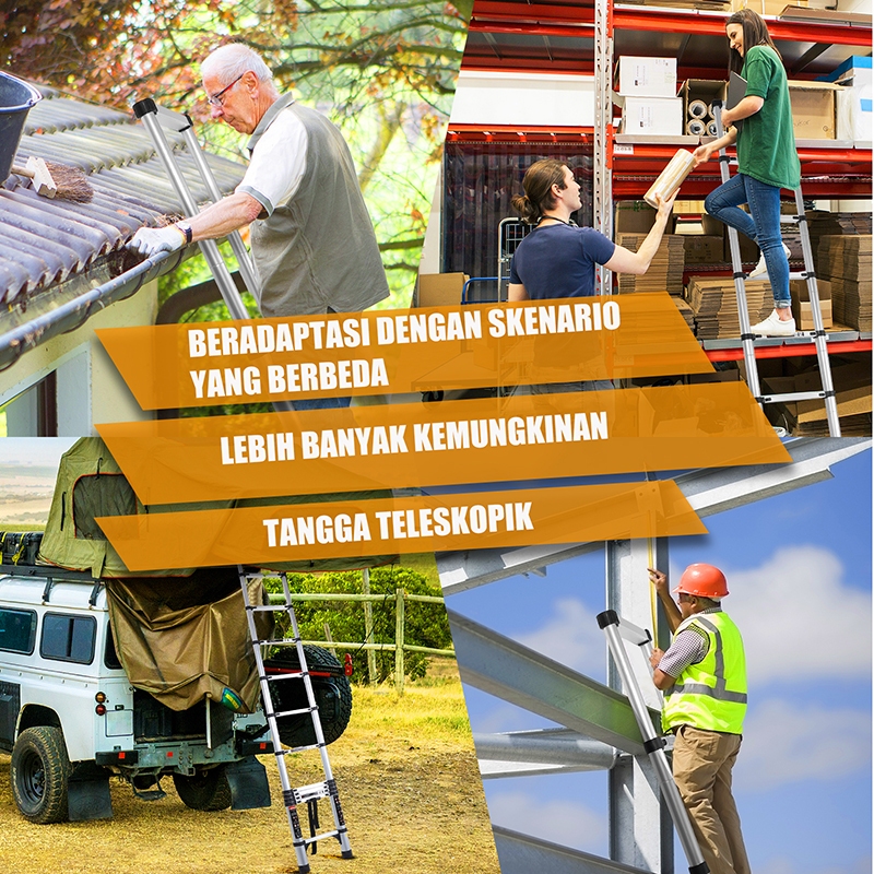 Tangga Aluminium Telescopic 5M Peringkat 4 Teleskopis Ringan Portable untuk Perbaikan Rumah