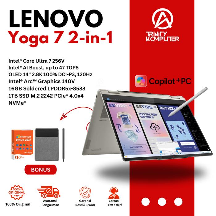 Lenovo Yoga 7 2-In-1 14Ill10 Intel Core Ultra 7 256V | Ram 16Gb | Ssd 1Tb | 14" Oled 2.8K Touch | Copilot+ Ai Pc | Win 1