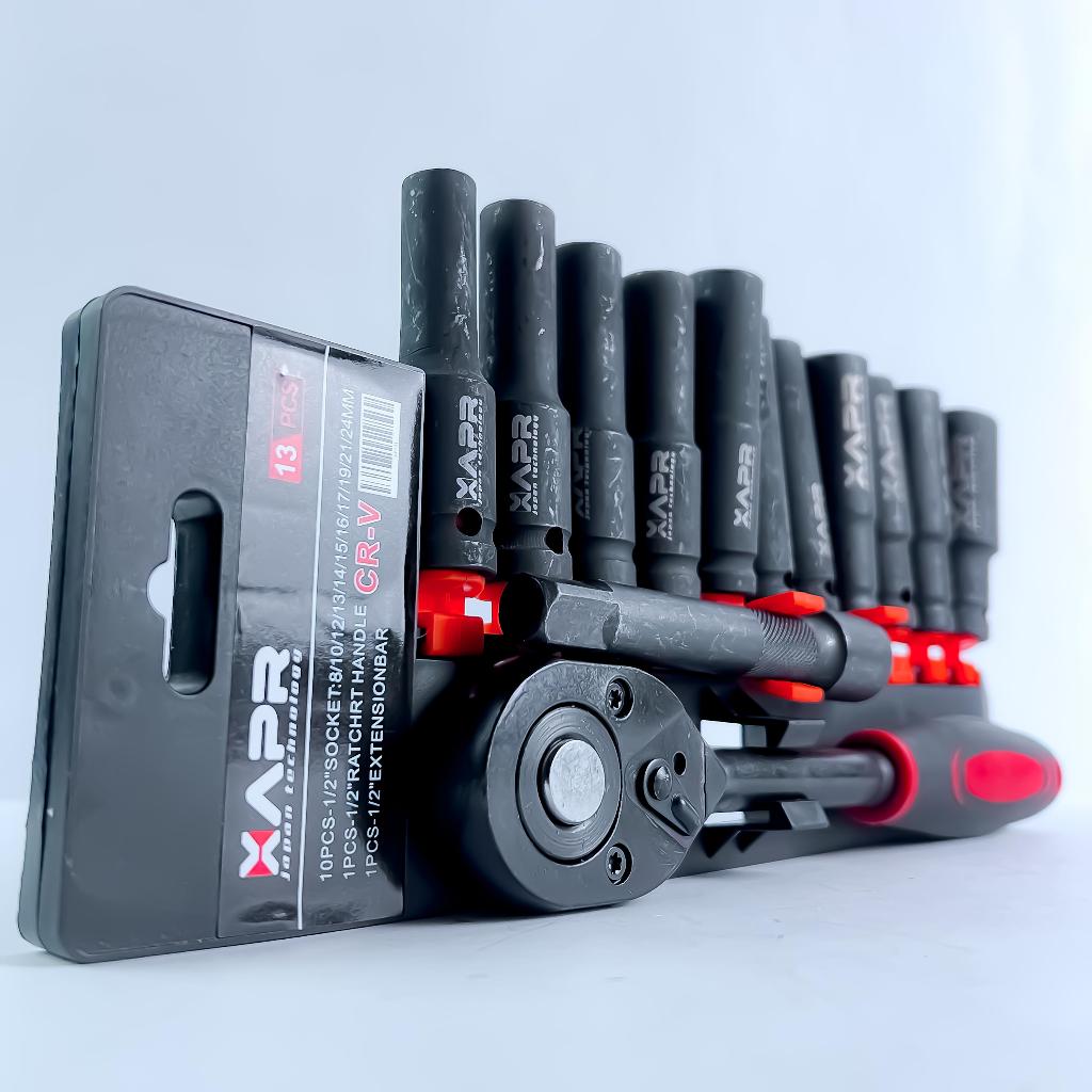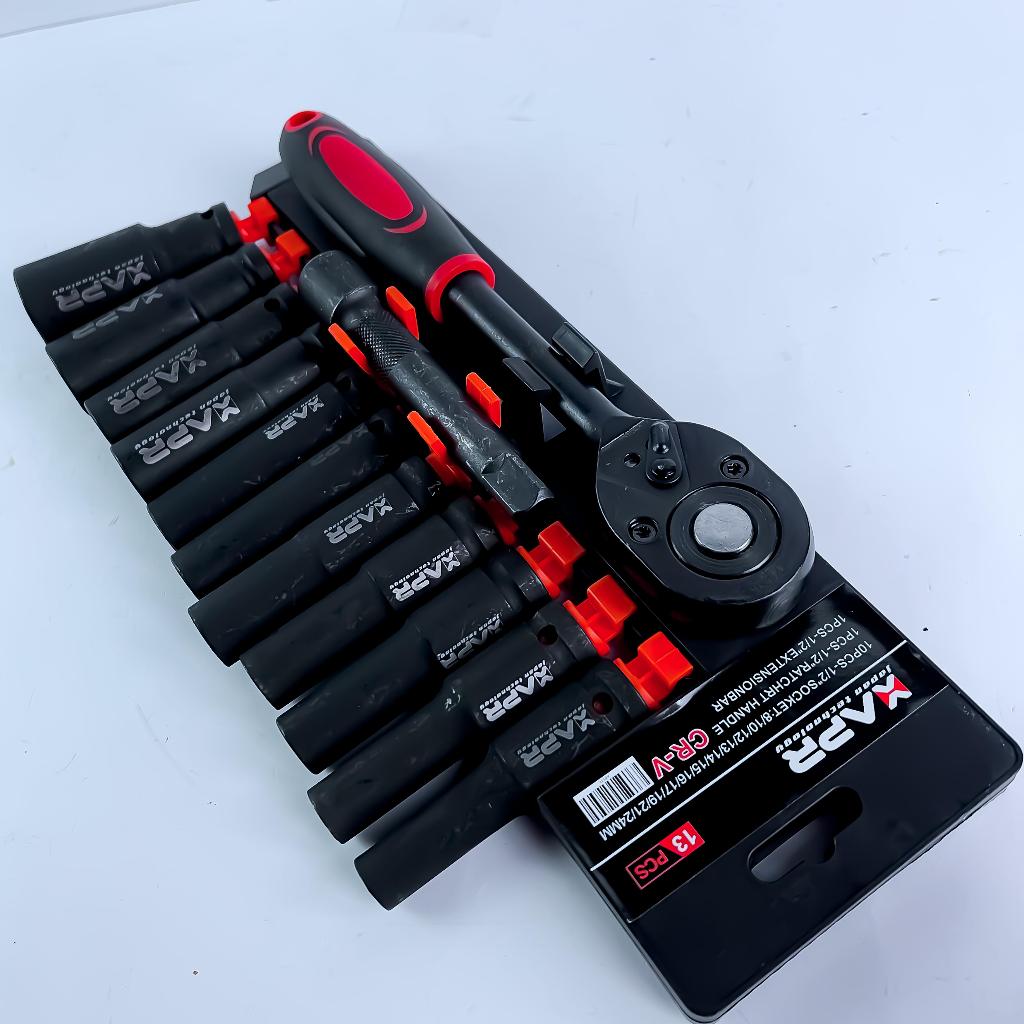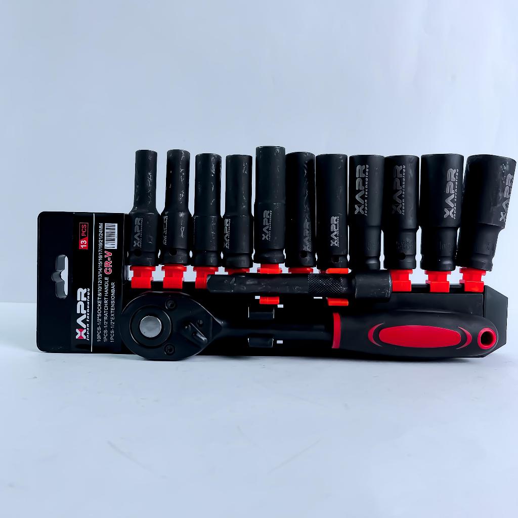 PROMO APR Rachet sock 1/2inch AP131 deep impact 8mm-24mm panjang doff titanium sok set