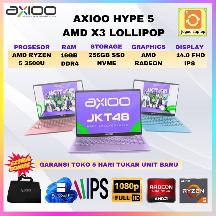 Axioo Hype 5 X3 Lollipop Series Amd Ryzen 5 3500U 16Gb 256Ssd Win11 14Inch Fhd Ips Jkt48 Windows - 8Gb Pink, Unit Laptop