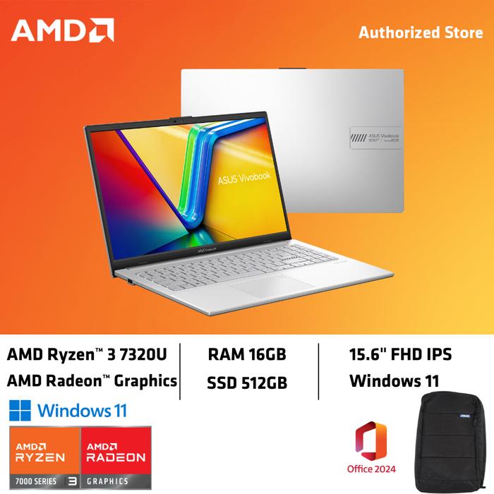 Asus Vivobook Go 15 E1504Fa Ryzen 3 7320U 16G 512Gb 15.6" Ohs W11 - Black