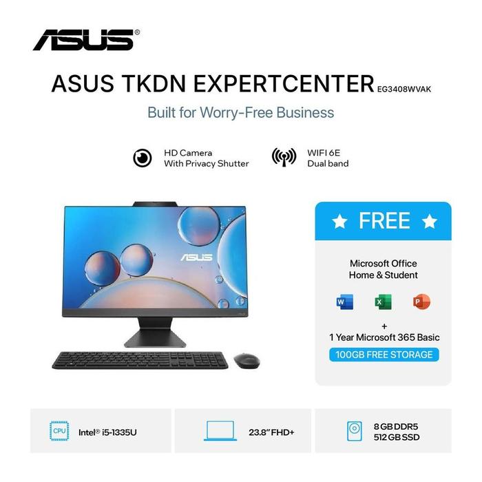 Asus Expertcenter Aio Eg3408Wvak I7 1355 I5 1335 I3 1315 16Gb 512Gb Ssd W11 23.8Fhd - Pc Desktop All In One Komputer -