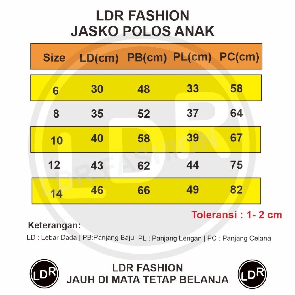 Ukuran 6 (4-5thn), Ukuran 8 (6-7thn), Ukuran 10 (8-9thn), Ukuran 12 (10-11thn), Ukuran 14 (12-13thn)