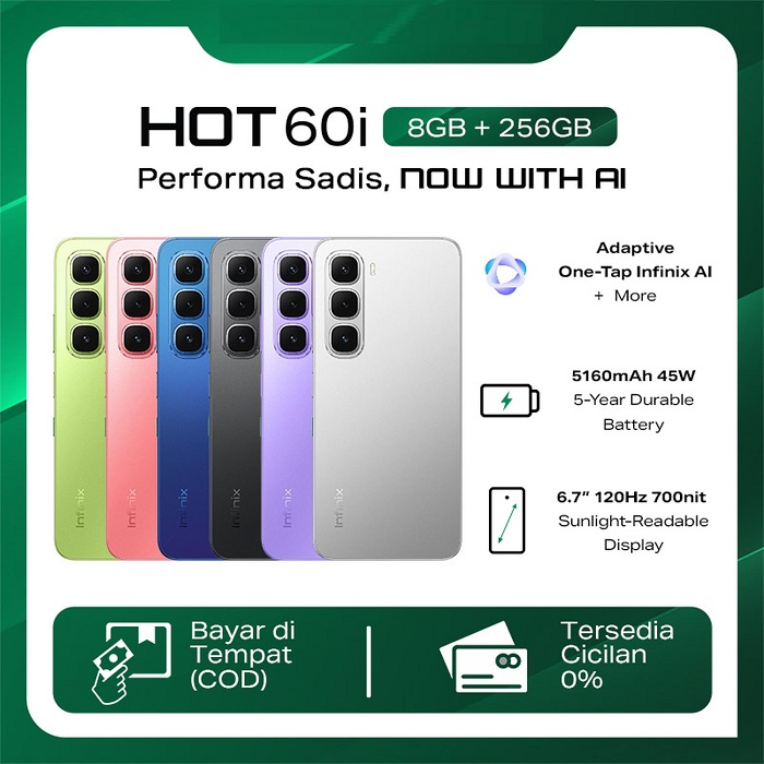 Infinix Hot 60i 8/256GB - Up to 16GB Extended RAM - Helio G81 - 6.7 inch 120Hz HD+ - 50MP - 5160 mAh - NFC