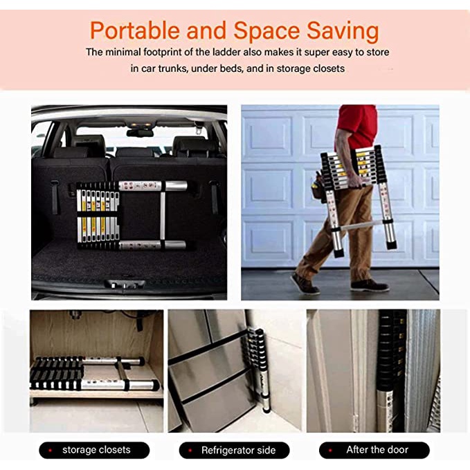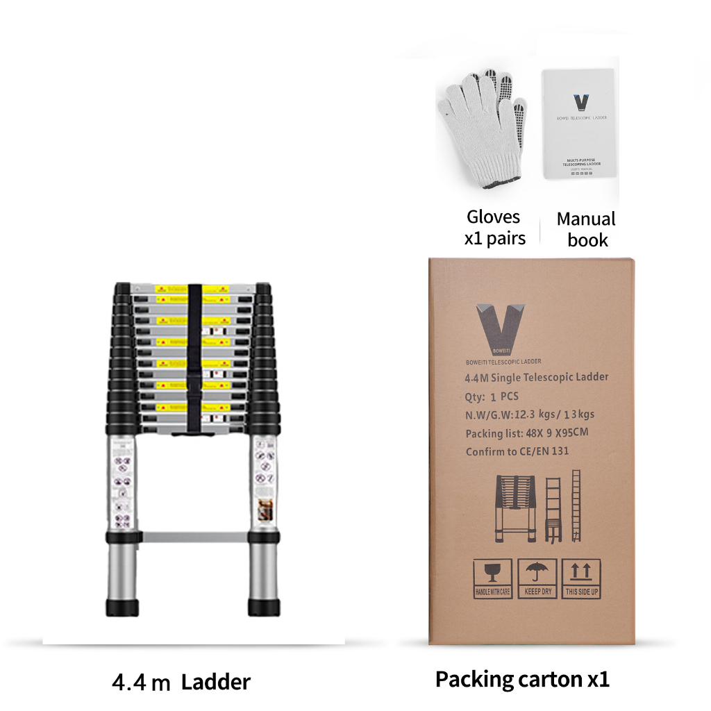 Tangga Teleskopik Aluminium Tangga Teleskopik Single Telescopic Ladder 2.6M/3.2M/3.8M/4.4M/4.7M/5.4M/6.2M/8M Kemasan yan