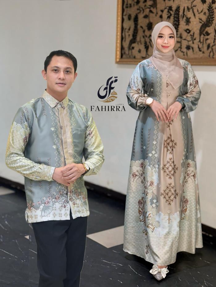 COUPLE DRESS MEDIINA BAHAN SILK PREMIUM SET KEMEJA PASANGAN MOTIF BUNGA ELEGAN MEWAH WANITA PANJANG MUSLIM GAMIS PESTA KONDANGAN KELUARGA BAJU - KEMEJA MINT MIX, M