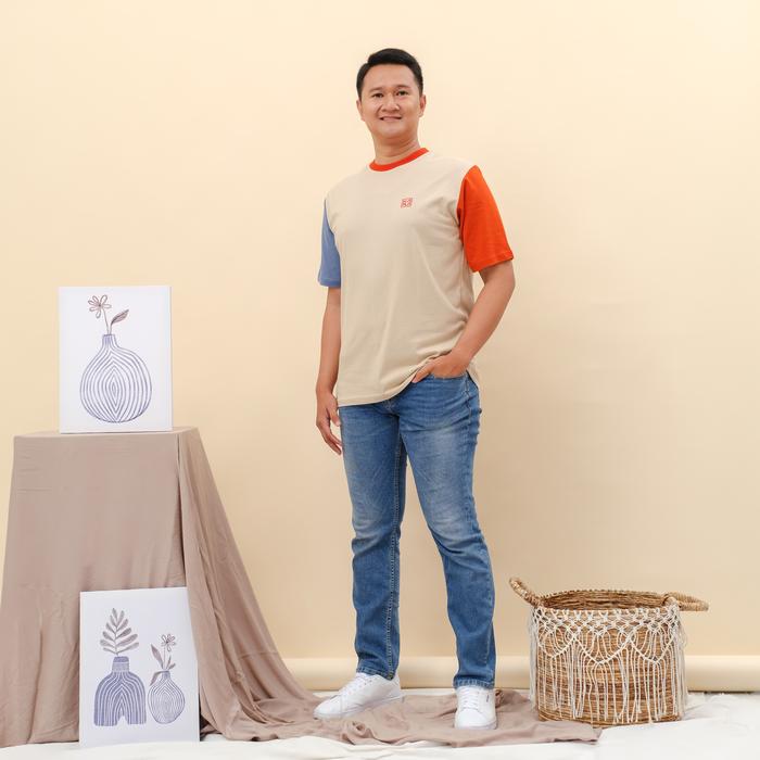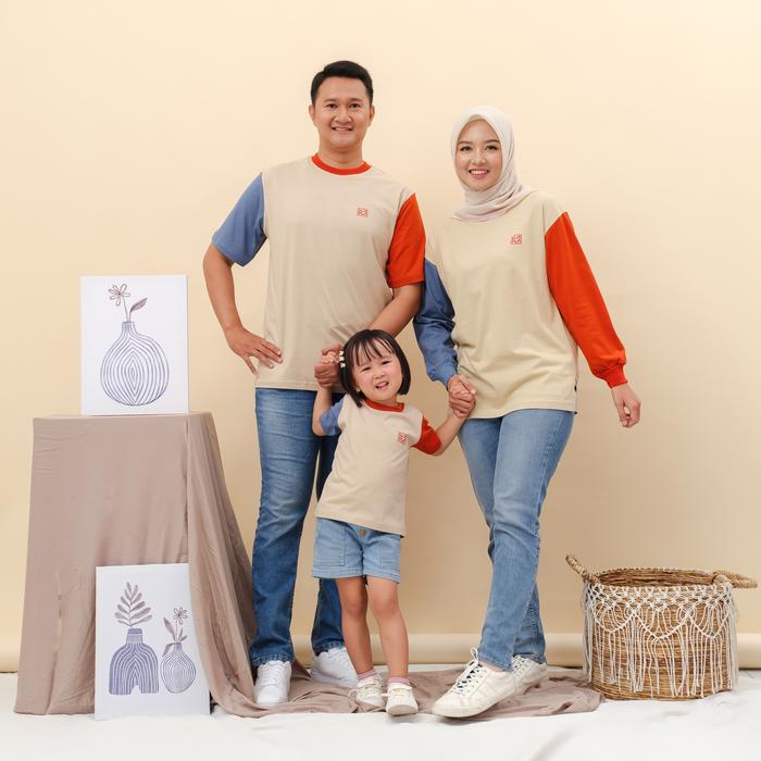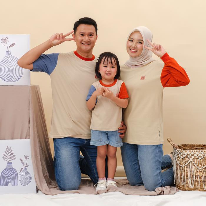 HAFLA FAMILY SET WEAR - KAOS COUPLE KELUARGA CDTT PREMIUM - COTTON COMED 20S BAJU WANITA KATUN PASANGAN - CDT (CREAM,DENIM,TERACOTA), M - DEWASA PENDEK