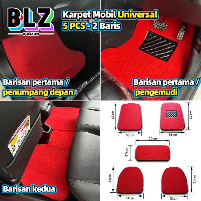 Karpet Mobil Universal pvc mie bihun 5 PCS - 2 Baris / Universal Fit Car Mats / Car Floor Mats