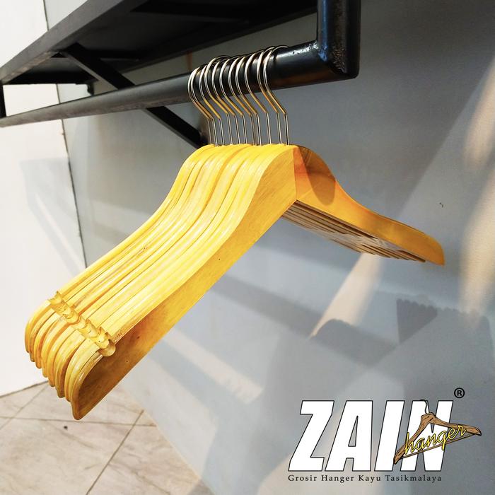 PREMIUM ! ( 12 PCS / 1 LUSIN ) - HANGER KAYU BAJU DEWASA - NATURAL - NATURAL ORIGINAL