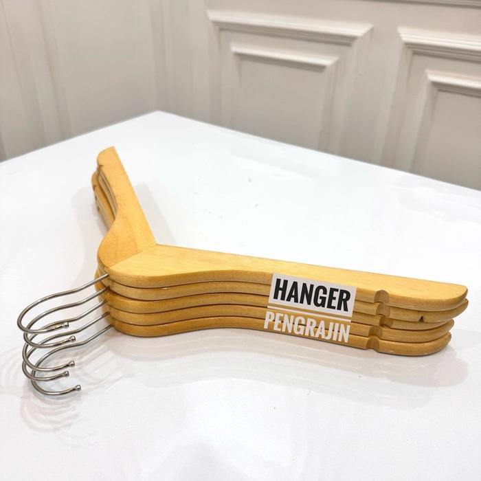 PREMIUM ! HANGER KAYU PREMIUM BAJU DEWASA NATURAL 1 LUSIN / 12PCS - -, - ORIGINAL