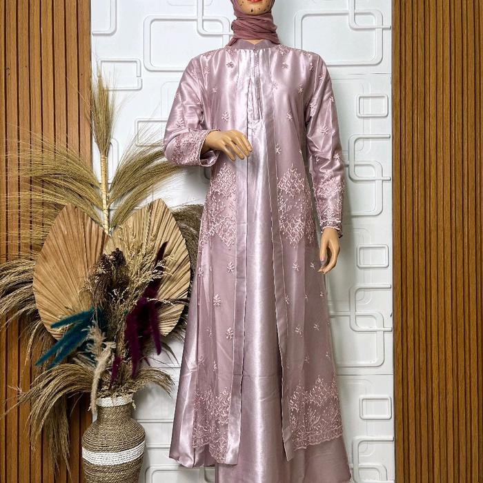 Gamis saten kristal mix brukat tile premium/gamis dewasa mewah/ Dress Wanita Muslim