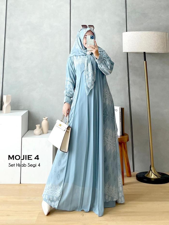 ILYA Fs - MOJIE 4 Baju Gamis Set Hijab Motif Etnik Ceruty baby doll premium dan Kekinian
