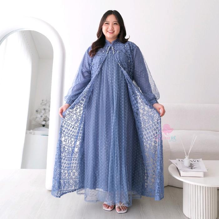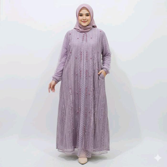 Jumbo gamis pesta violeta brukat mutiara ld 120 130 140 150 cm