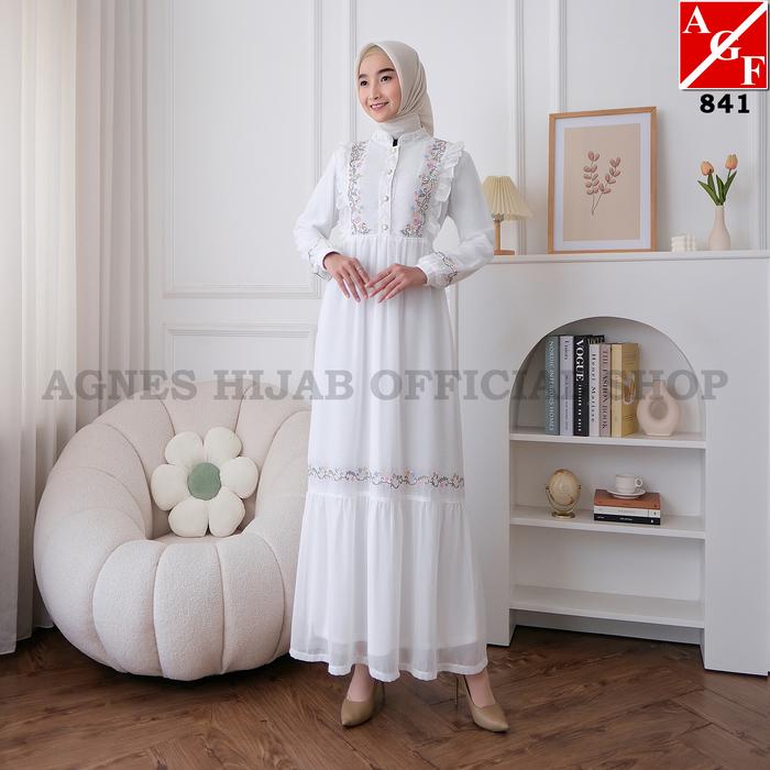 Agnes Hijab - Bella Dress Baju Gamis Bordir Bunga Baju Muslim Wanita Gaun Pesta Kondangan Mewah
