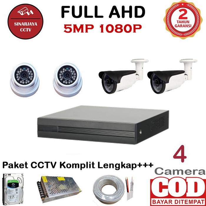 Paket Cctv 4 Channel 4 Camera 5Mp 1080P Lengkap Tinggal Pasang - Hdd 2000Gb