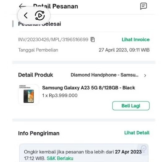 Hp Samsung Galaxy A23 5G 8/128 GB Warna Hitam/Black Bekas Original