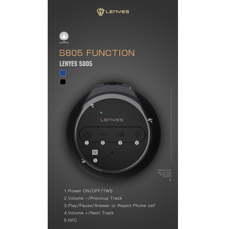 LENYES SPEAKER BLUETOOTH TWS V5.0 15WATT WITH NFC HIFI STEREO 360 SOUND S805 WATERPROOF BATTERY CAPACITY 2200 MAH