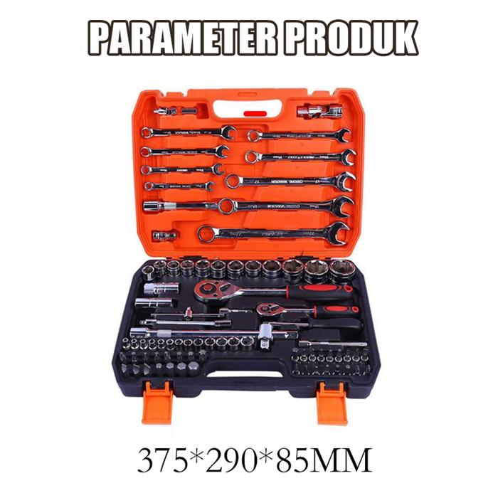 Set Perkakas 82 Buah Soket, Kunci Pas, Obeng, dan Alat Perkakas Mobil & Motor, Kokoh dan Tahan Lama,
