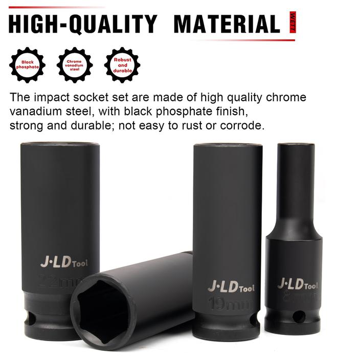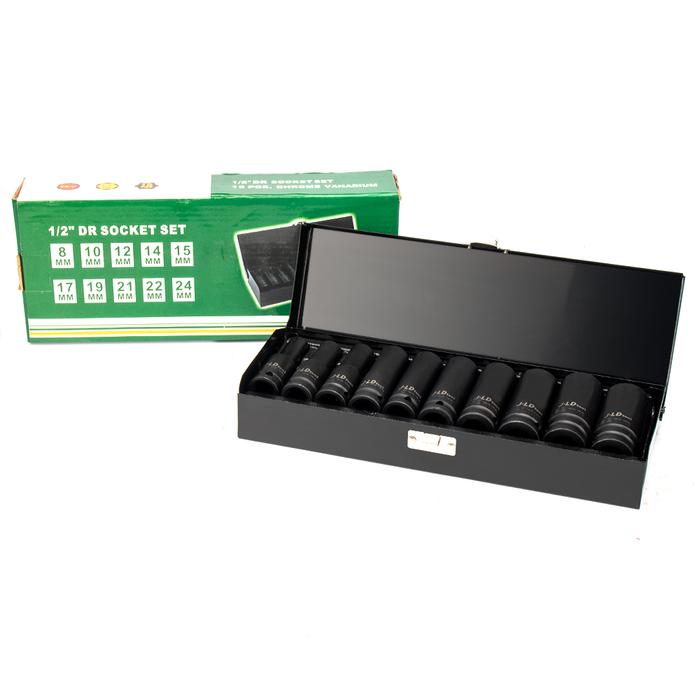 JLD Impact Socket Set 1/2 inch Alat 10pcs Set Alat Soket Dampak Alat Bengkel Garasi, Set Soket