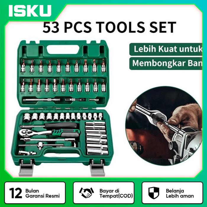 ISKU Toolkit 3/8" Kunci Sok Set 30pcs 6PT 3/8" 1/4" Mata Sock 4-19mm