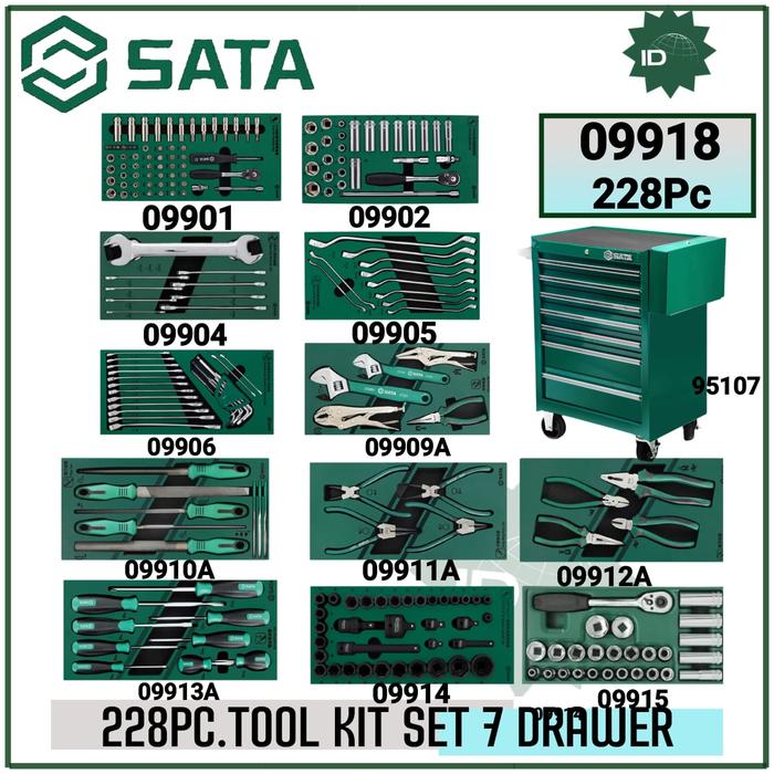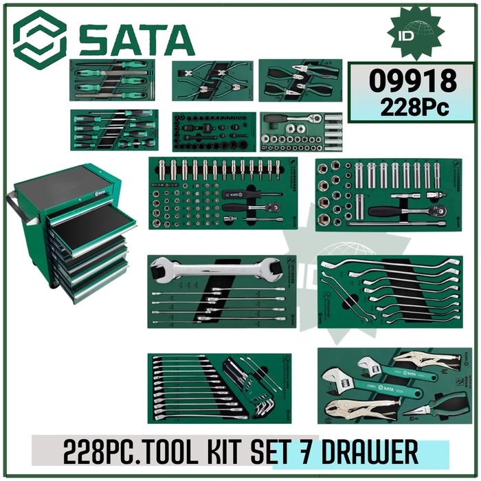 TOOLS KIT SET 228 PCS 7 DRAWER TOOL TROLLEY SET SATA 09918