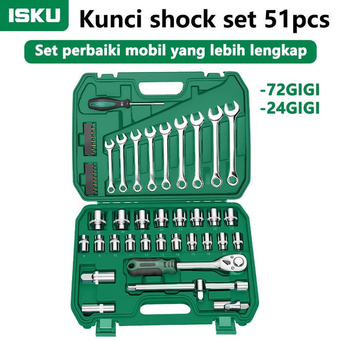 ISKU tool kit set alat kunci shock sok set 51pcs kunci ring 9pcs8-19mm