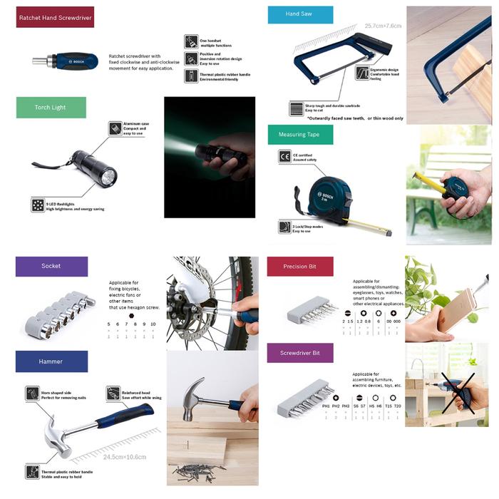 Hand Tool Kit All-in-One Bosch 108 Piece Multi Function - Perkakas