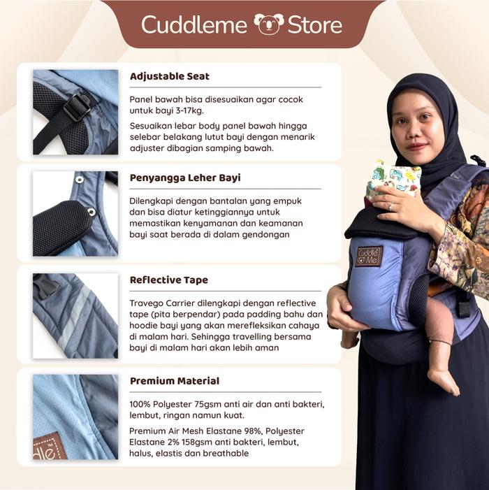 CuddleMe TraveGo Carrier Gendongan Instan Bayi SSC M-Shape Waterproof Desain Compact Ringan Praktis