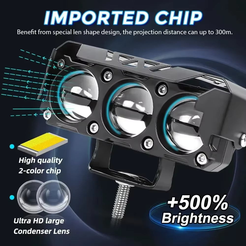 FLASH SALE Lampu tembak LED Laser transformer 3 mata SQL 3 mata lensa putihkuning Motor LED Lampu