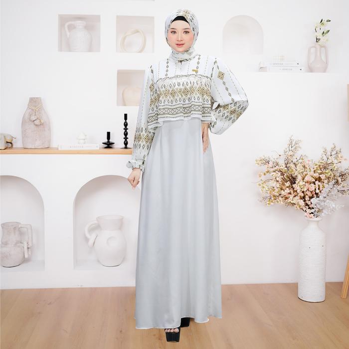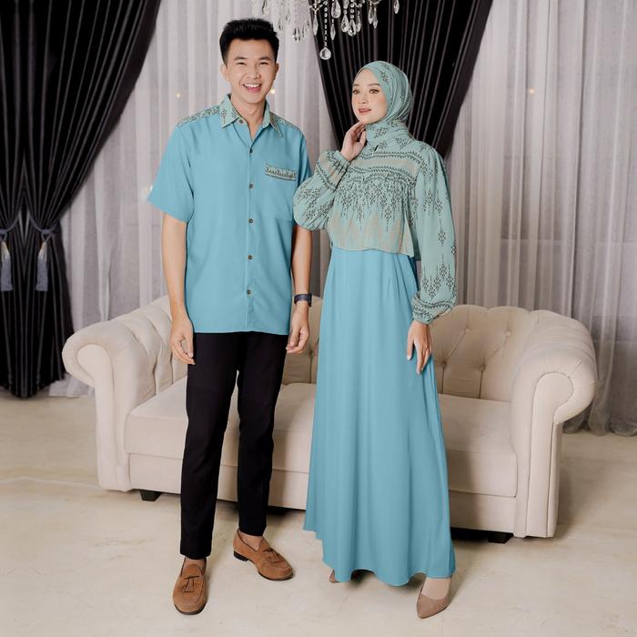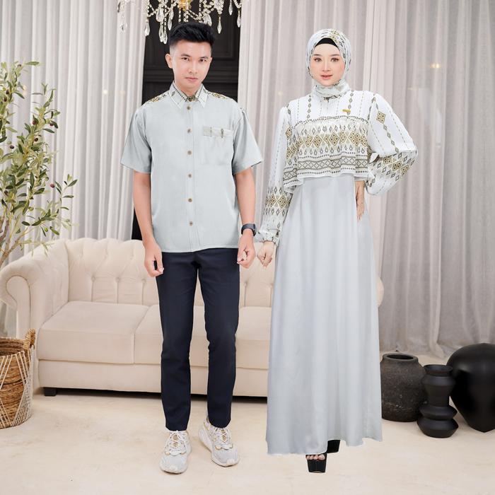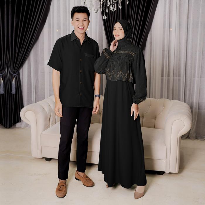 DEMORE - 3IN1 BAJU SETELAN COUPLE PASANGAN DEWASA - LEAF GAMIS LAYER MOTIF (GAMIS+KOKO+HIJAB) OUTFIT LEBARAN WANITA MUSLIM ELEGAN - CP LEAF PANJANG ROSE