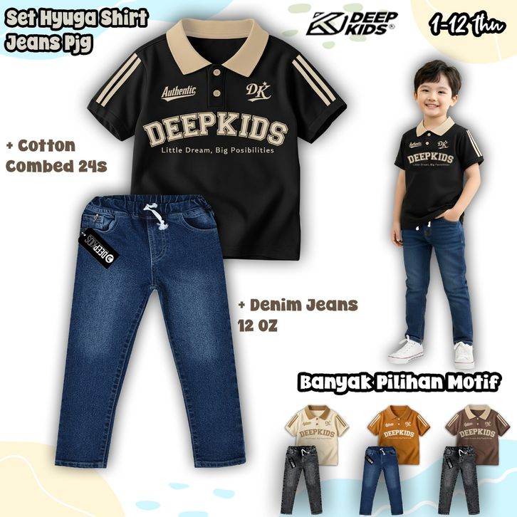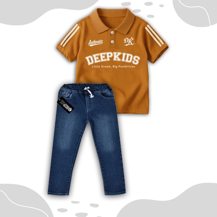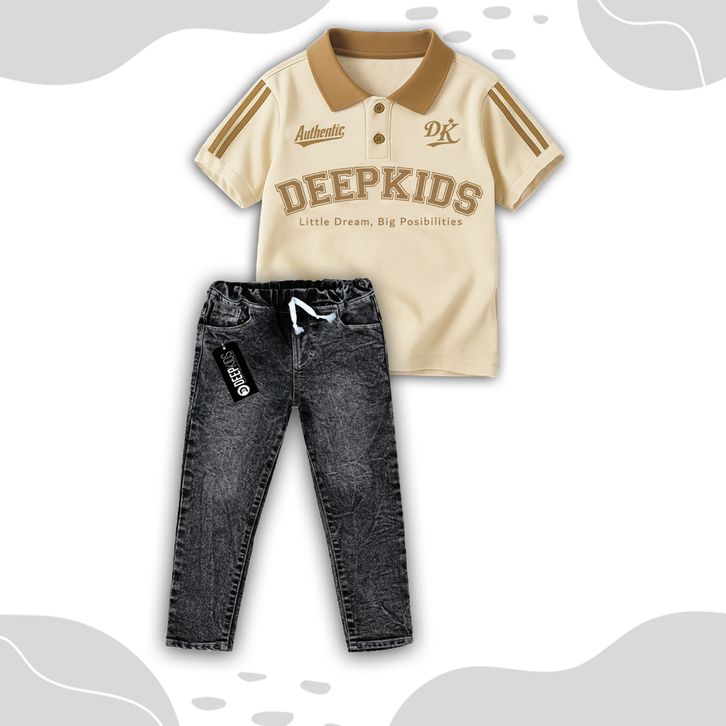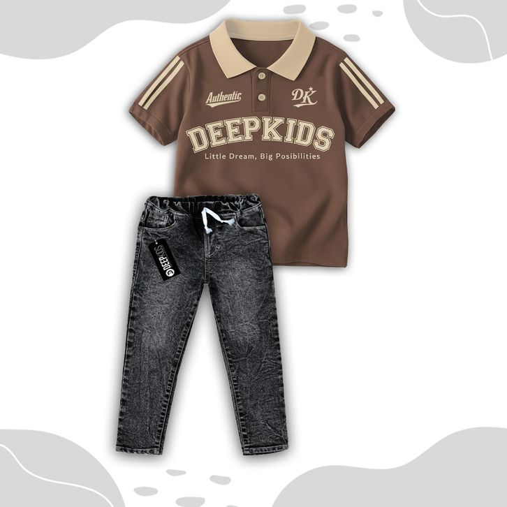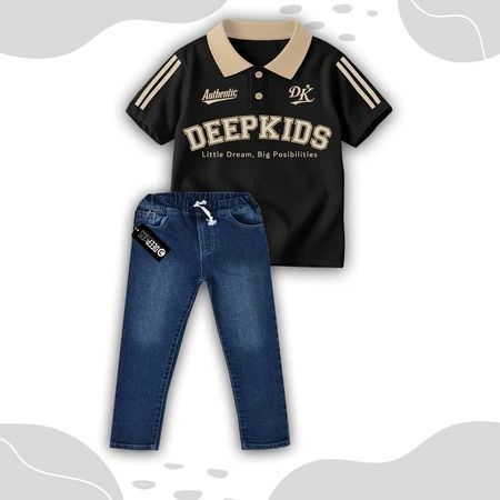 [Star] Setelan Anak Laki Laki Usia 1-12 Tahun Baju Kaos Kerah Anak Kerenn Model Lengan Pendek Celana Jeans Panjang Bahan
