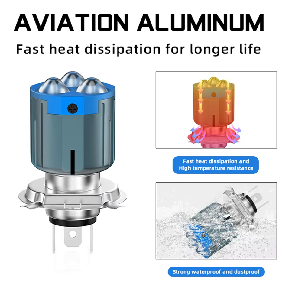 FLASH SALE Lampu Depan Motor Kecerahan Tinggi dengan 3 Lensa BA20D Bohlam H4 H6 Sorot Kuning Putih Lampu Sorot Moto Skuter Aksesoris