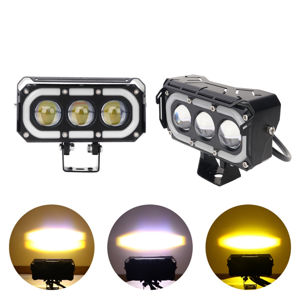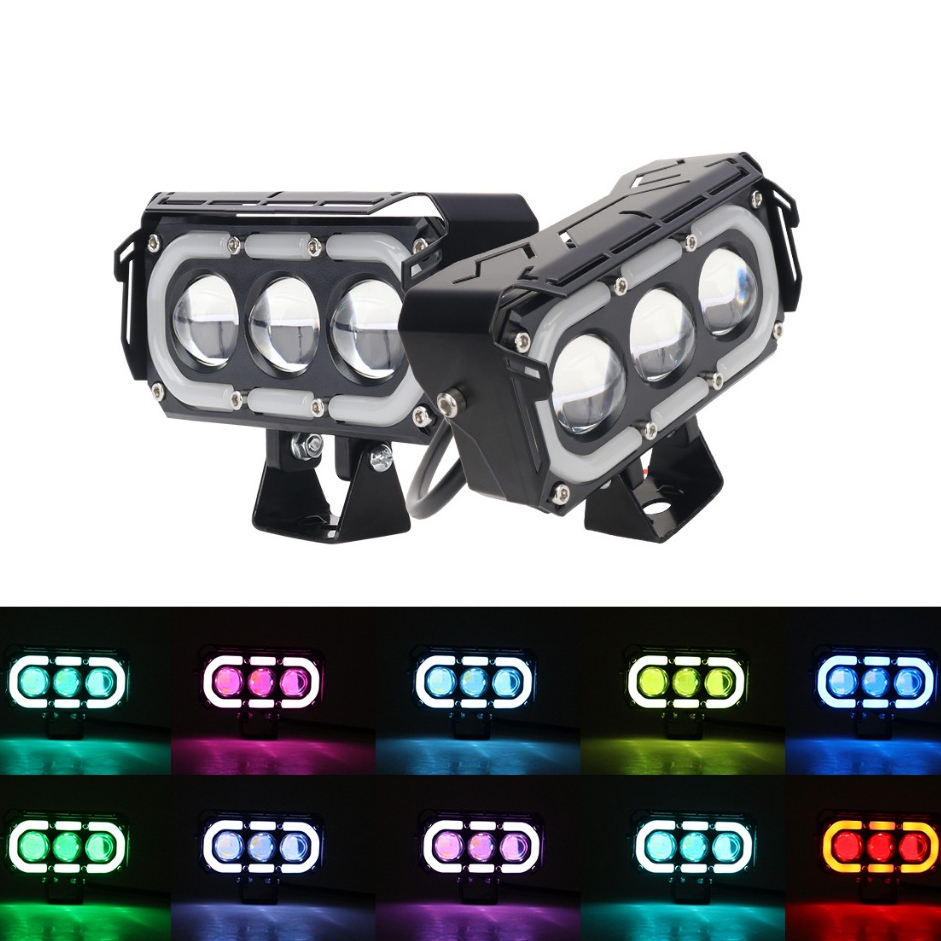 FLASH SALE Lampu sorot sepeda motor dengan kecerahan tinggi lampu depan mata malaikat LED RGB 3 lensa lampu jauh dan dekat universal 12V