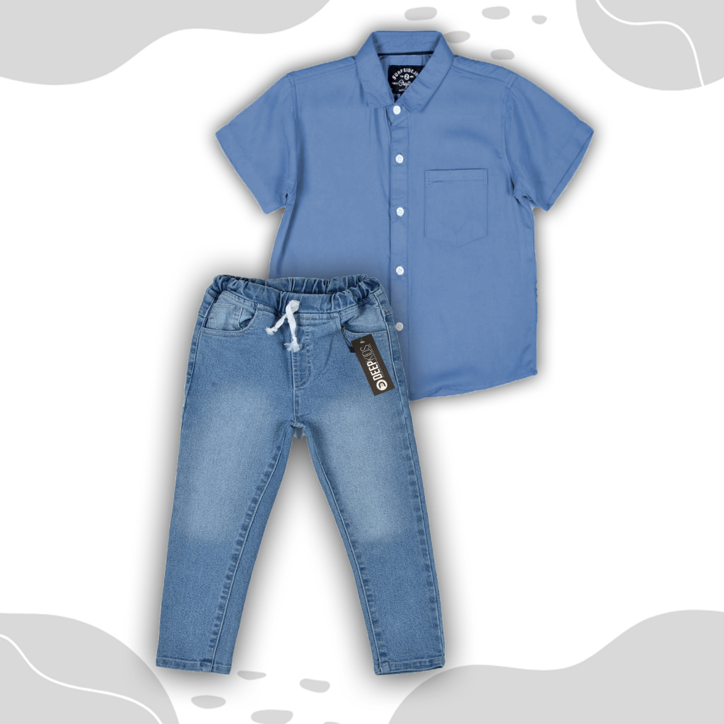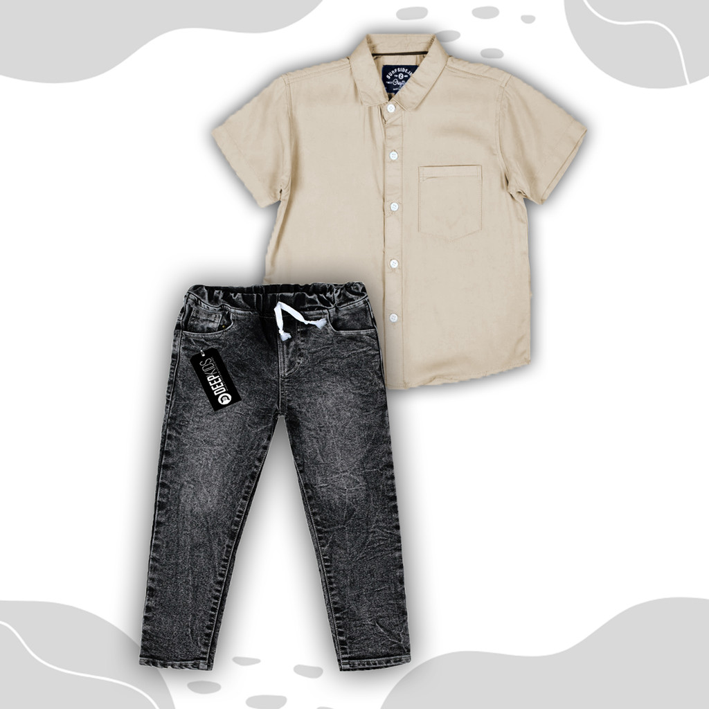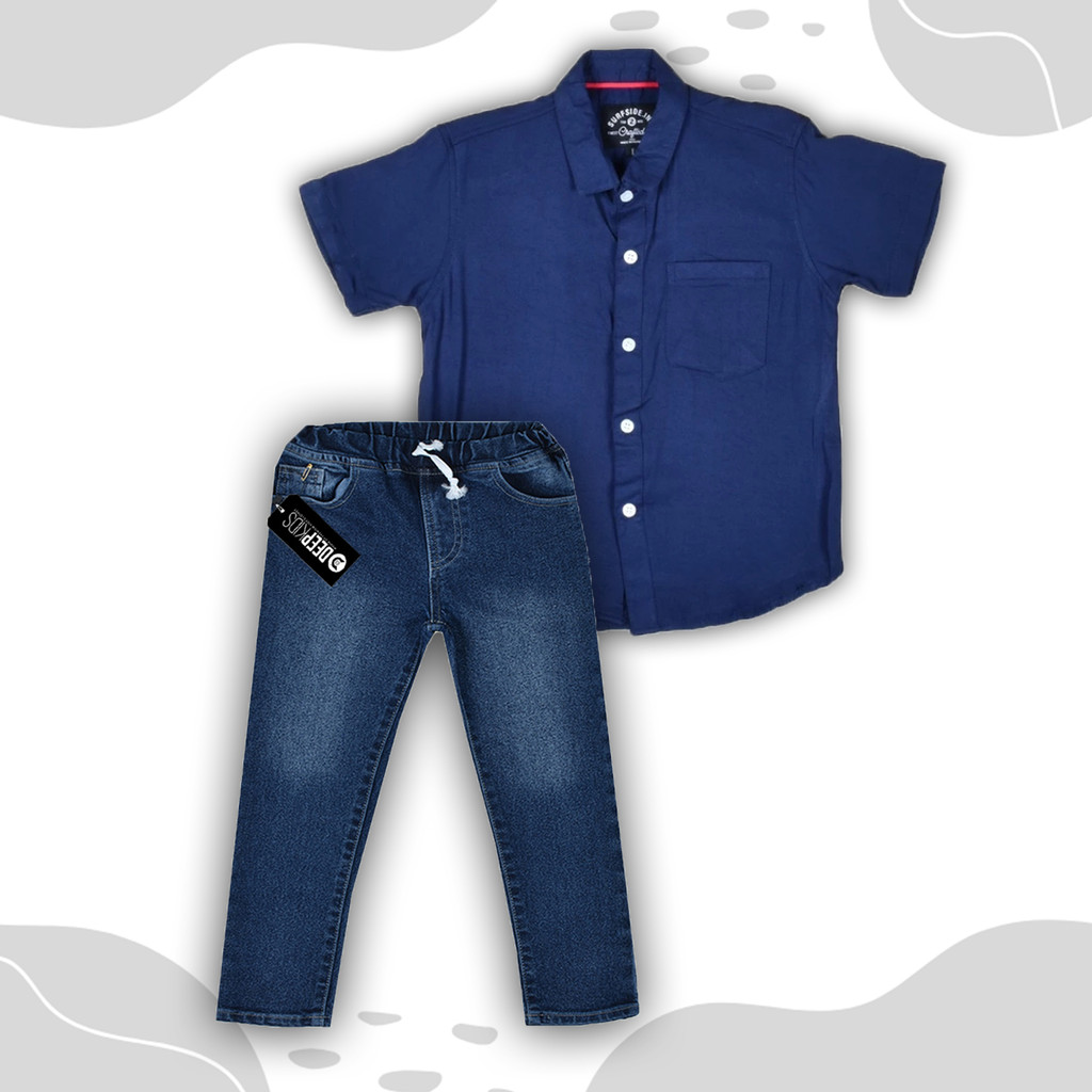 Deepkids Setelan Anak Laki Laki Kemeja Pendek Celana Jeans Panjang Premium Usia 1 2 3 4 5 6 7 8 9 10 11 12 Tahun | Set
