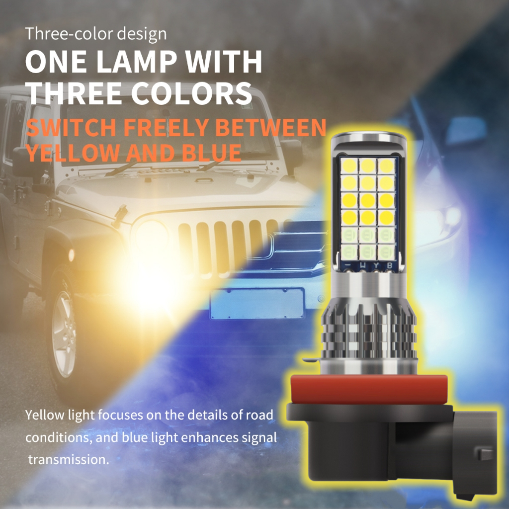 FLASH SALE 1 lampu kabut mobil H8H9H11 lampu LED 12V putihkuningbiru es triwarna terintegrasi