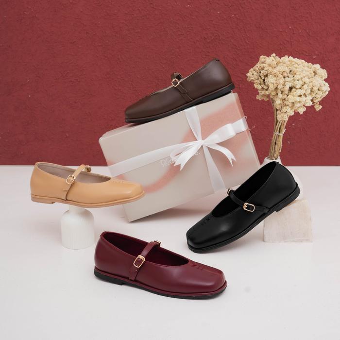 Dianable - Brisia Flatshoes Sepatu Wanita (Black - Maroon - Camel - Dark Brown) Design Minimalis