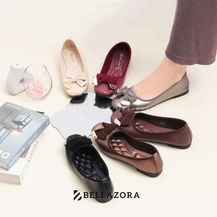 BELLAZORA-pansus korean style wanita/flat shoes coklat/sepatu flatshoes wanita korea Elegant Hitam