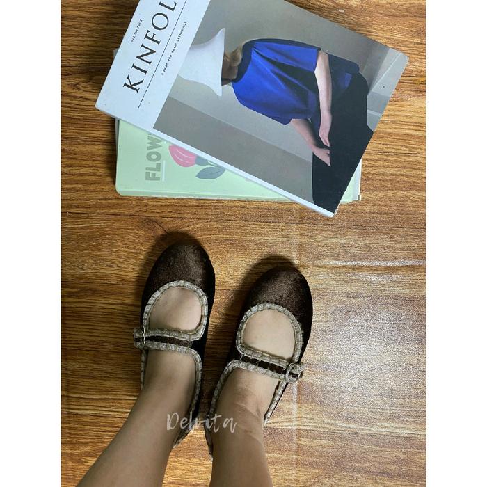 Wilona Shoes Women Flats Tali Wanita Rajut Manik Mote Untuk Main Cewe Wanita Perempuan Kekinian