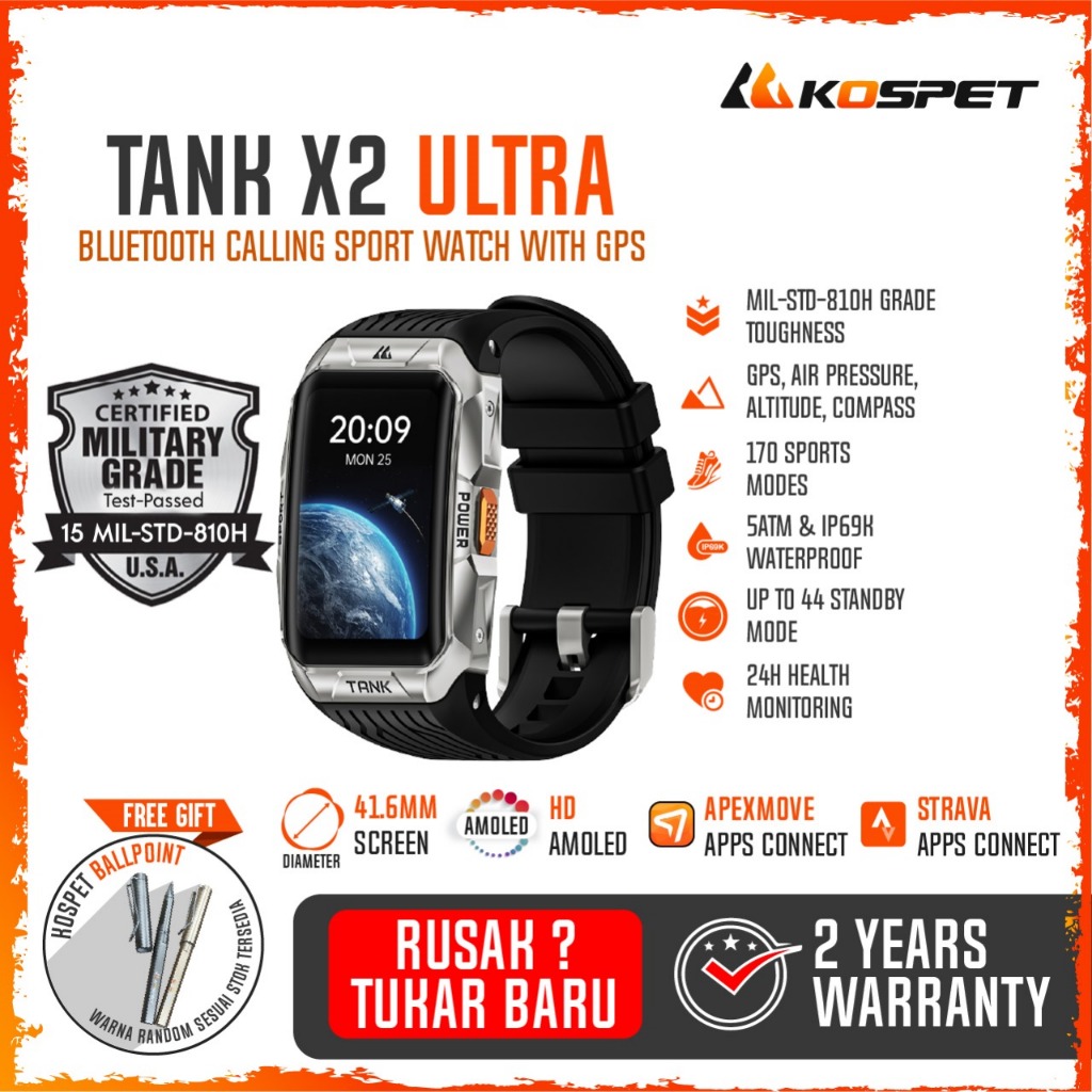 Kospet Tank X2 Ultra US 15 Military Grade Rugged Smartband GPS 1.64" Amoled 170+ Sports Modes Strava Su