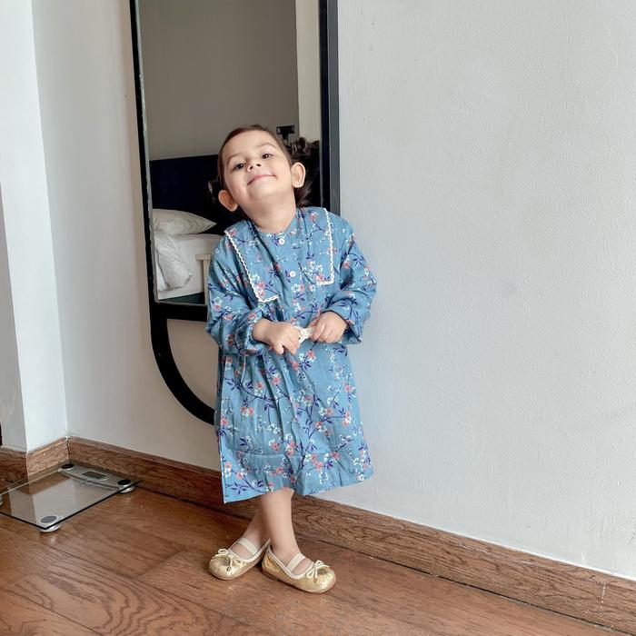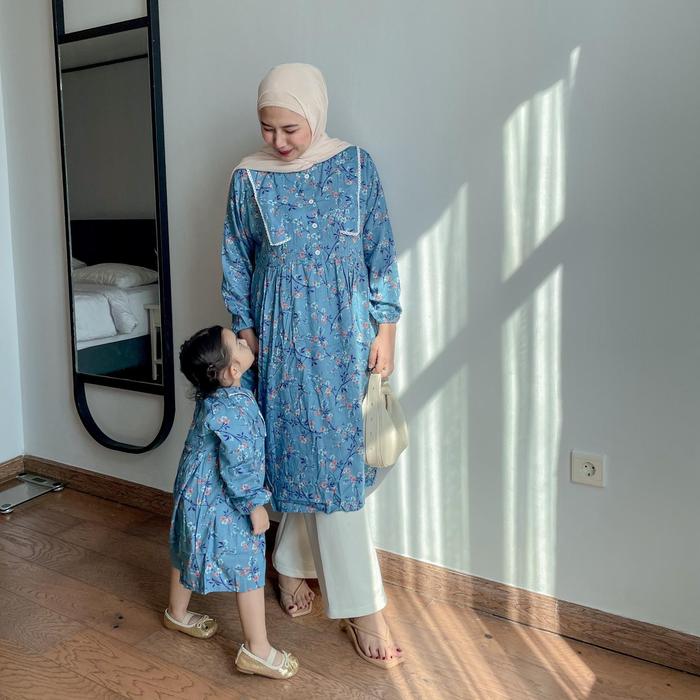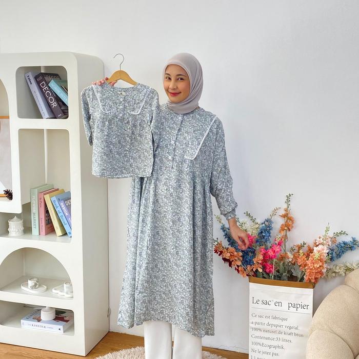 KALSANDFREY QIANA TUNIK COUPLE MOM AND KIDS NYAMAN DIPAKAI SET PAKAIAN KELUARGA MUSLIM BAJU - BABY BLUE, ANAK XXXL