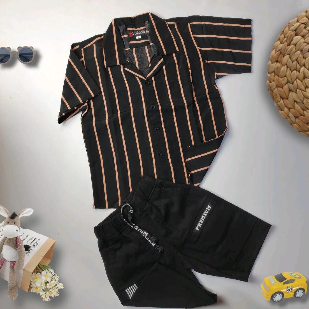 Setelan Anak Laki -Laki Usia 3-8Tahun Kemeja Anak Lengan Pendek Wollfis Garis-Garis & Celana Pen