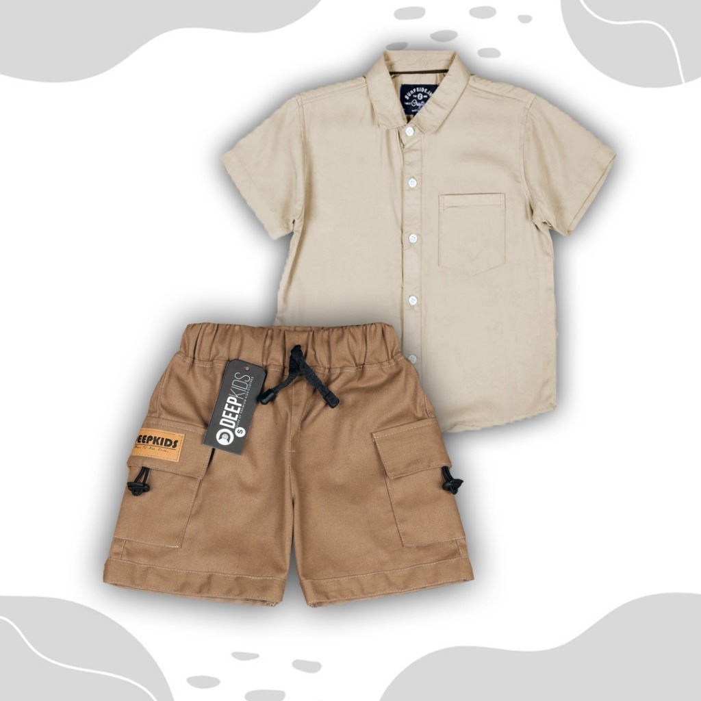 Deepkids Setelan Anak Laki Laki Kemeja Pendek Celana Cargo Pendek Usia 1 2 3 4 5 6 7 8 9 10 11 12 Tahun | Set kemeja Pd