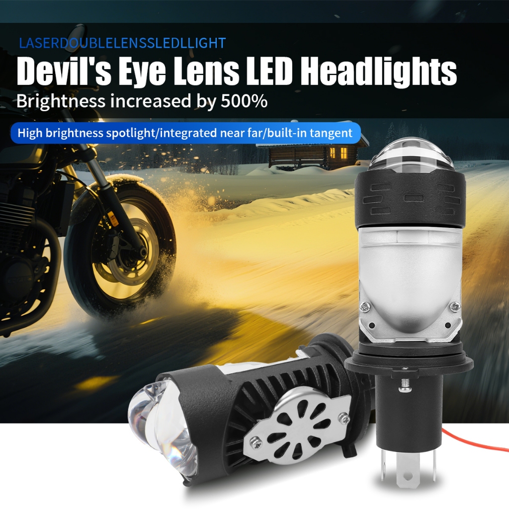 FLASH SALE 1 lampu depan motor H4 lampu sorot kecerahan tinggi 350000LM plug and play lampu merahbiru bukaan mata setan 12V