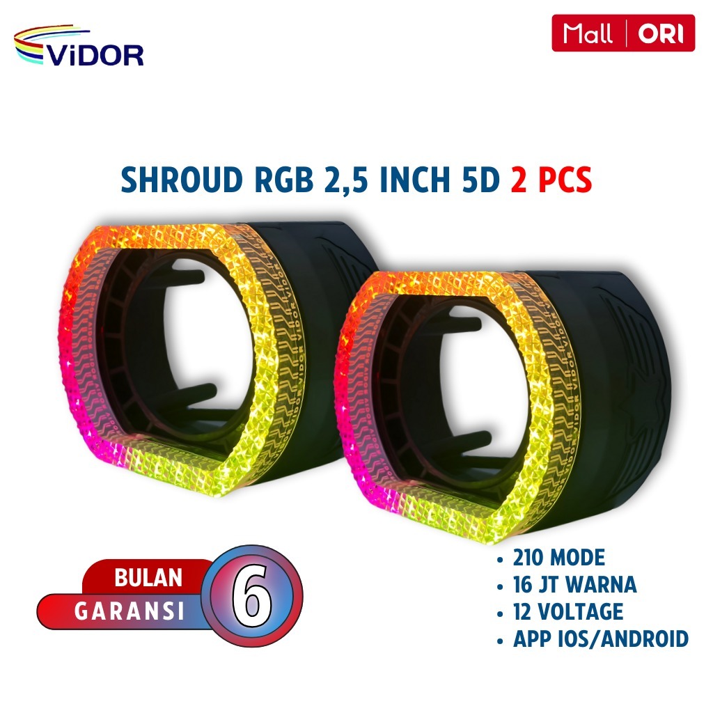 FLASH SALE Sepasang (Kanan & Kiri) Shroud RGB 25 Inch Lampu Projie Motor Mobil BiLED 210 Mode 16 Juta Warna