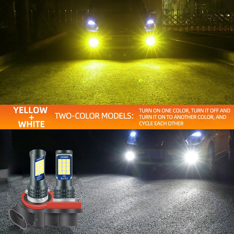 FLASH SALE 1 bulb LED Lampu Putih H11 Two Color 24SMD untuk Headlight Fog lamp Mobil Lampu Depan untuk Headlight