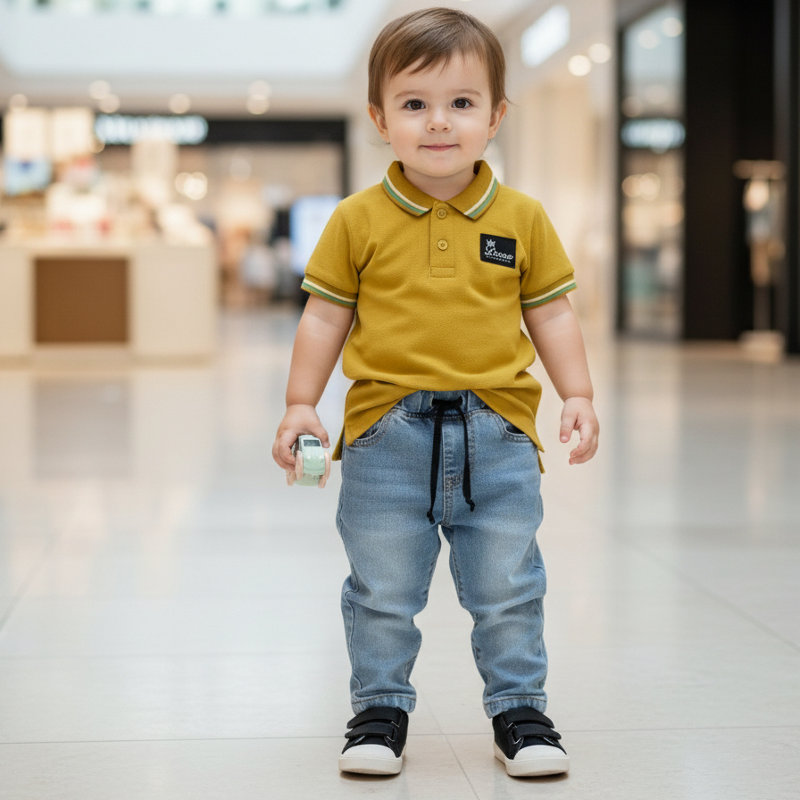 BRONEKIDS Setelan Kaos Pendek dan Celana Jeans Panjang Anak Laki-Laki Usia Tahun 1-12 Tahun