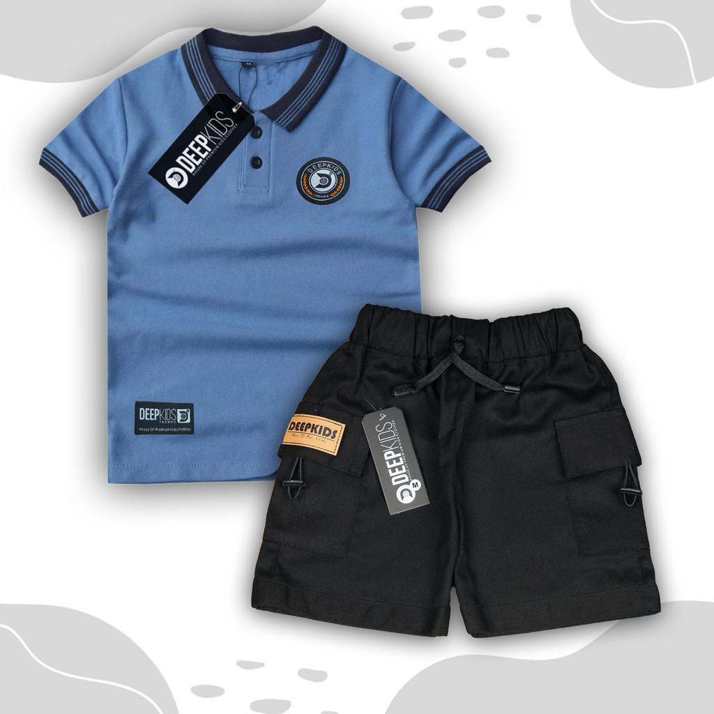 Deepkids Setelan Anak Laki Laki Distro Kaos Polo Kerah & Celana Cargo Pendek Bahan Premium untuk Usia 1 2 3 4 5 6 7 8 9