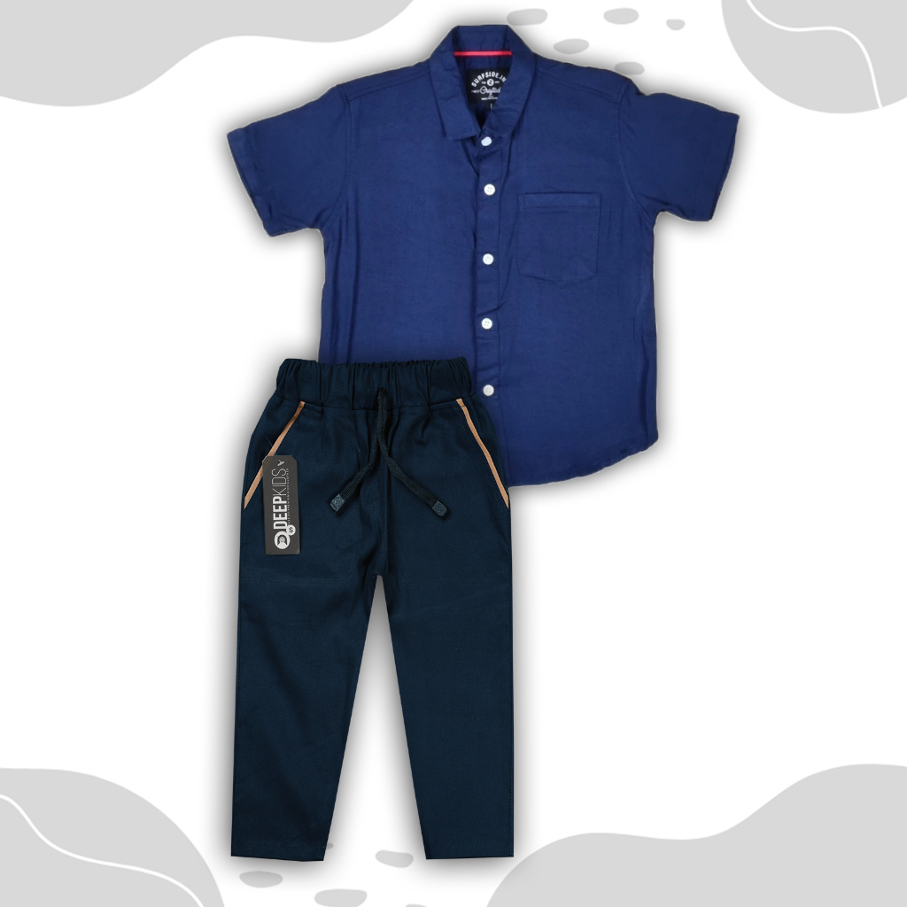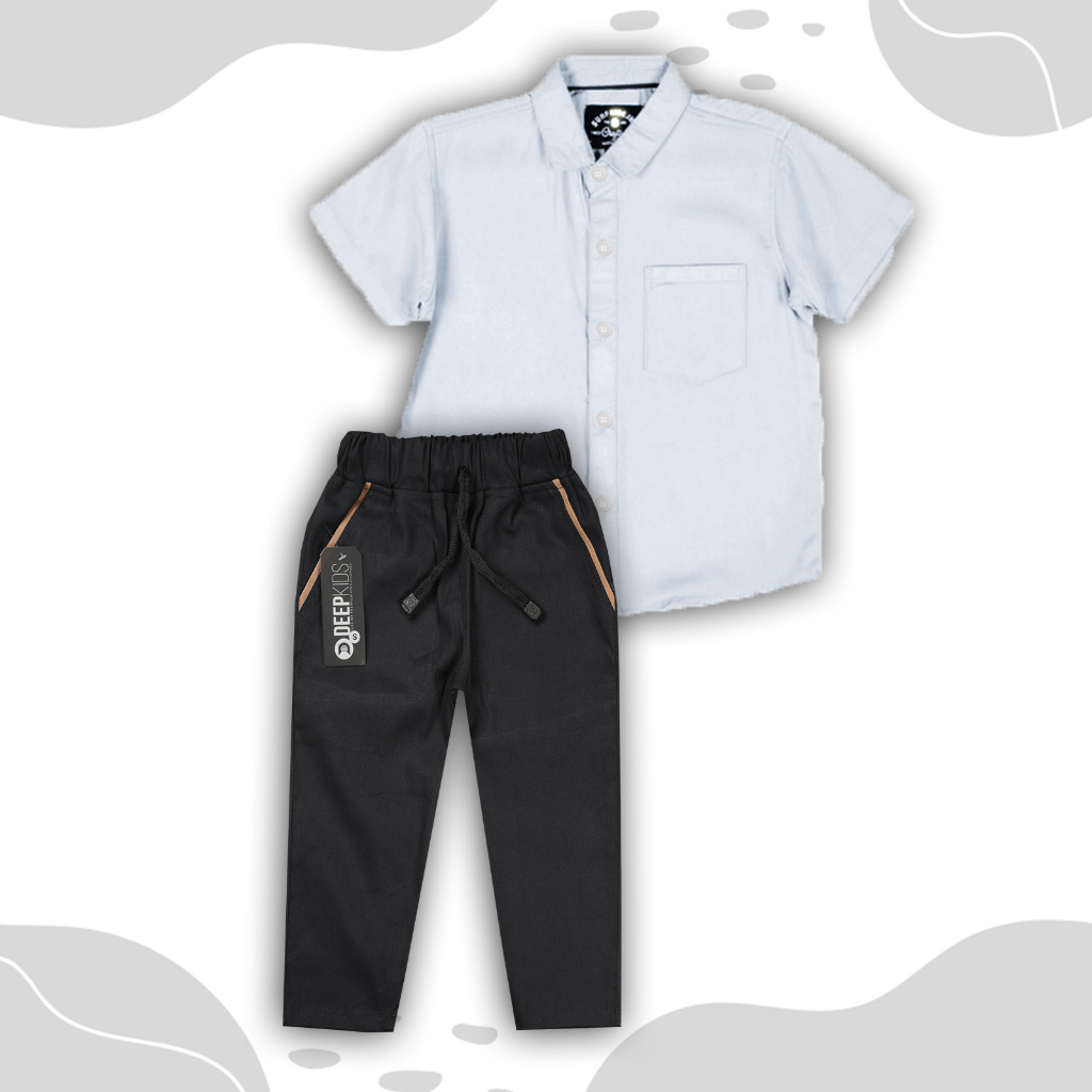 Deepkids Setelan Anak Laki Laki Kemeja Pendek Celana Chinos Panjang Usia 1 2 3 4 5 6 7 8 9 10 11 12 Tahun | Set Kemeja