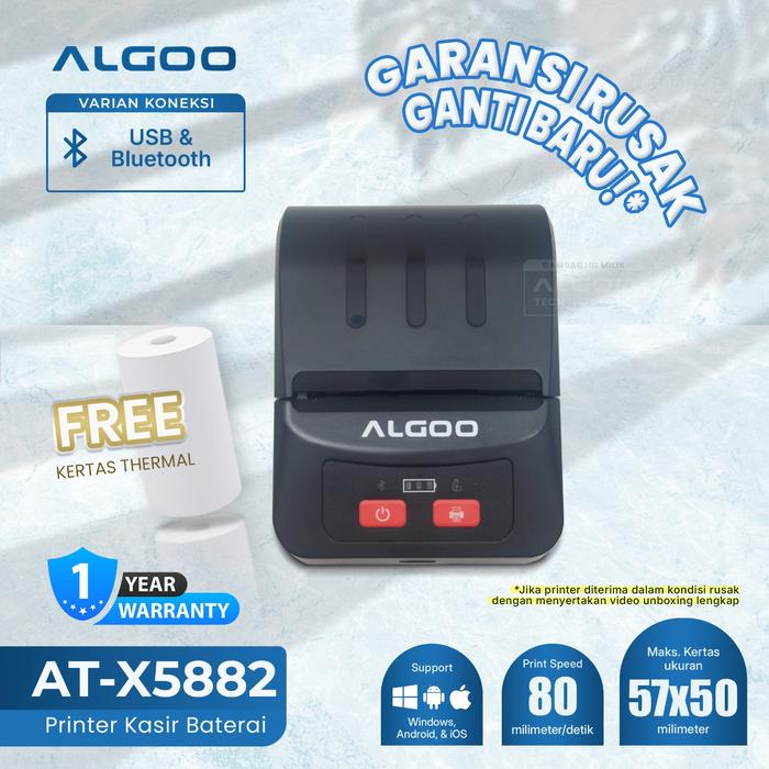 ALGOO AT-X5882 Printer Struk Nota Thermal Baterai Tanpa Tinta
